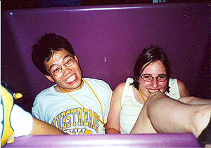 Andrea, Erika, and I are riding the water ride in the Mall of America.