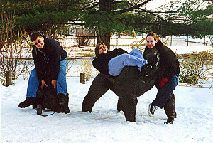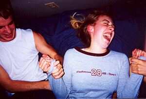 This is my roommate Chris and our friend Heidi. Heidi's roommate Kristin was also in the room. Heidi is being tickled to death and it's looks like she is in the middle of having an attack of some sort. Luckily she was able to survive long enough to help us move our furniture. |