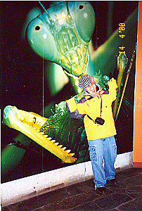 Here is David about to be eaten by a big momma praying mantis. |